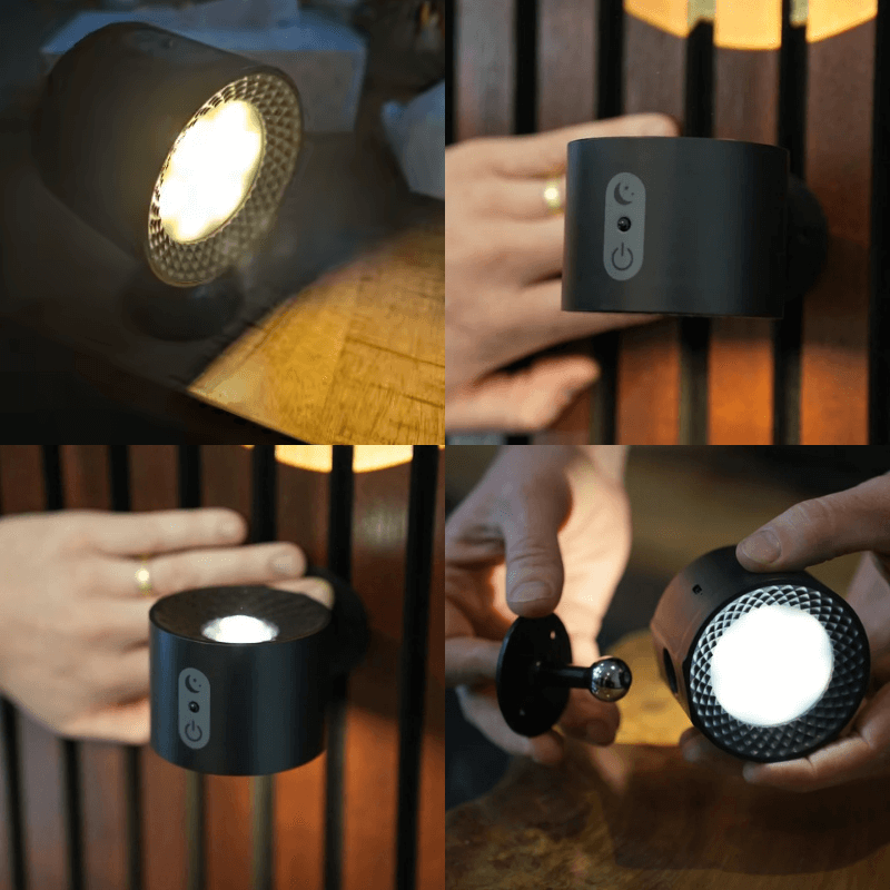 Versatile Lighting System: The wall spotlight features a base that can be securely glued or drilled, paired with a magnetic light head for effortless positioning and precise adjustment.